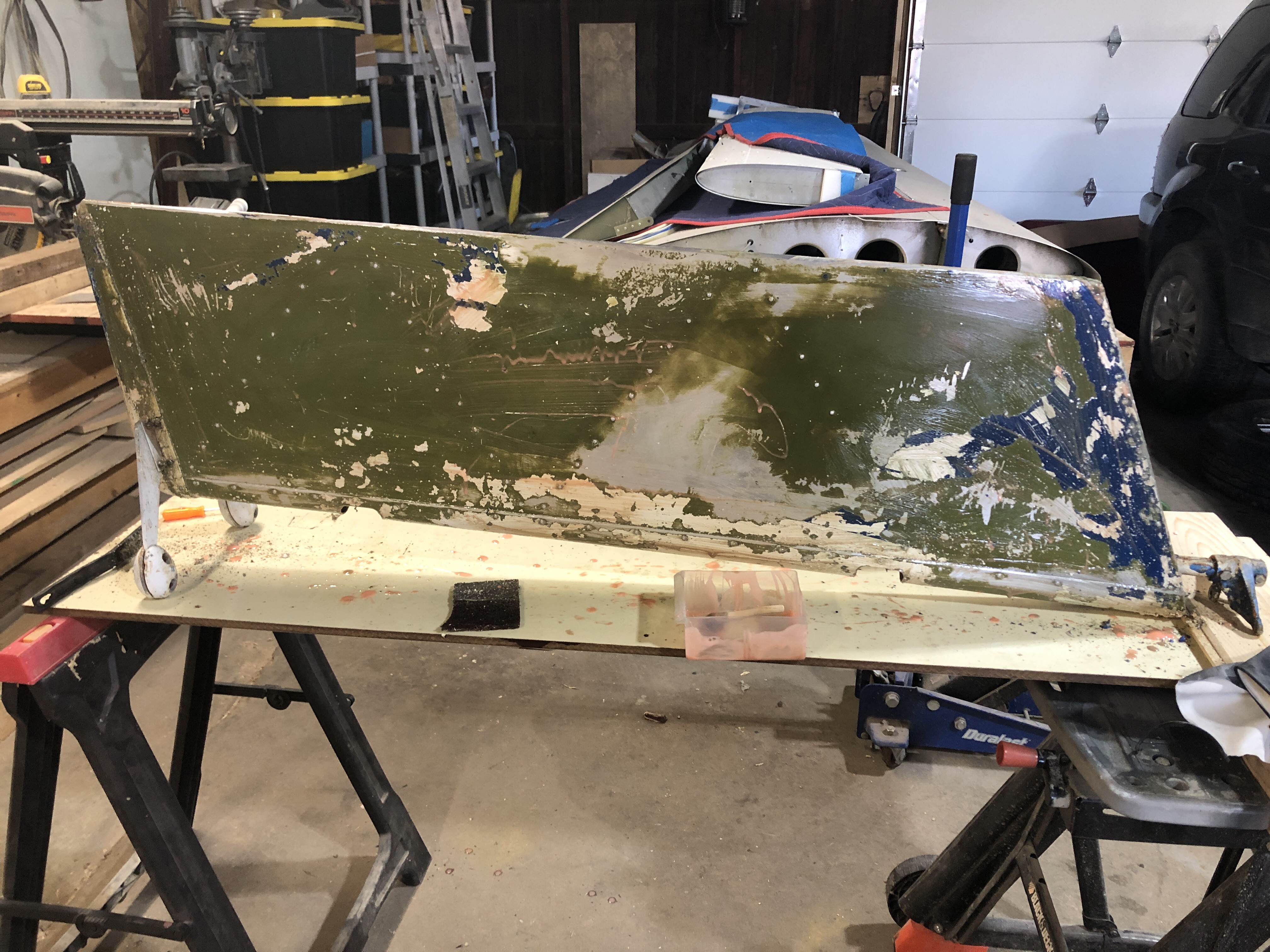 Item number 13 on the discrepancy list was the rudder. It had been painted with at least two coats of paint and I was suspicious of the balance condition and possible hidden defects. I removed the rudder and took it back to the farm shop for a complete strip and inspection.