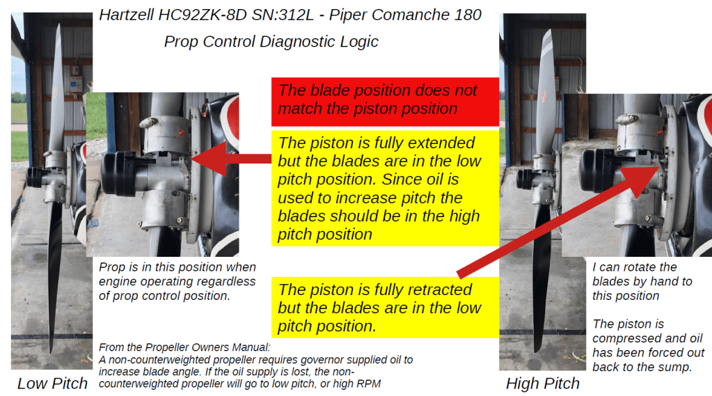 We left off with a complete lack of propeller pitch control during our run up and taxi Memorial Day weekend. The short version of the below story is that we need new clamps for our prop or a different prop. This was a challenging problem to diagnose and here is how we did it.