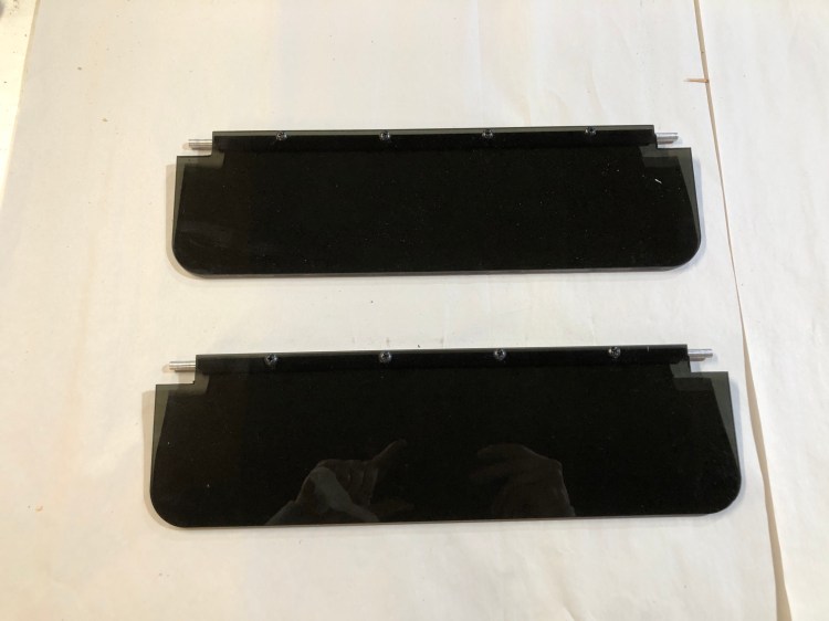 With the shafts machined and tapped its time to cut and mount the plastic visors. I used the 1/4 tinted plexiglass listed above cut to the same shape as the original visors. You can use a table saw, band saw, waterjet machine or milling machine to cut the plexi.